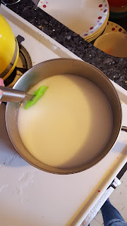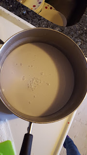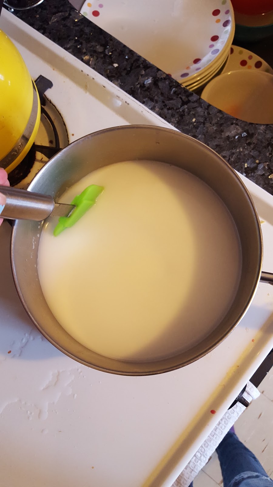 Pot two is removed from heat right before boiling and citric acid is added. At this point, I take the temperature of both pots to make sure they are close to each other.