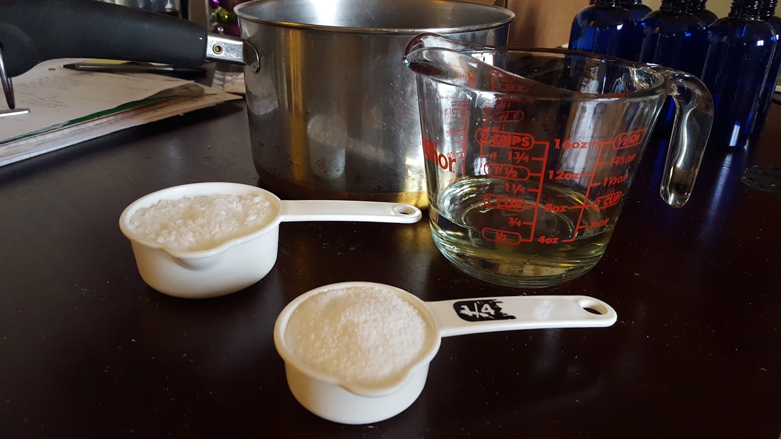I like to use a mix of fine and coarse ground sea salt in my body scrubs. Finer salt is more gentle for people with sensitive skin. Coarser salt is able to exfoliate more and help your skin get clean. Most grocery stores carry both. If you want to be fancy you can get himalayan pink salt or celtic sea salt which have minerals that may or may not provide added health benefits.