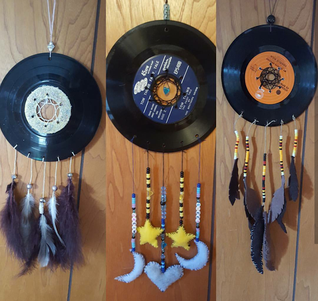 Summer 2016 – Audrey salvages around 30 of the 45rpm vinyl records and starts making dreamcatchers as a way to reuse and recycle them. Originally giving them away as gifts, Audrey got positive feedback and tons of inquiries.