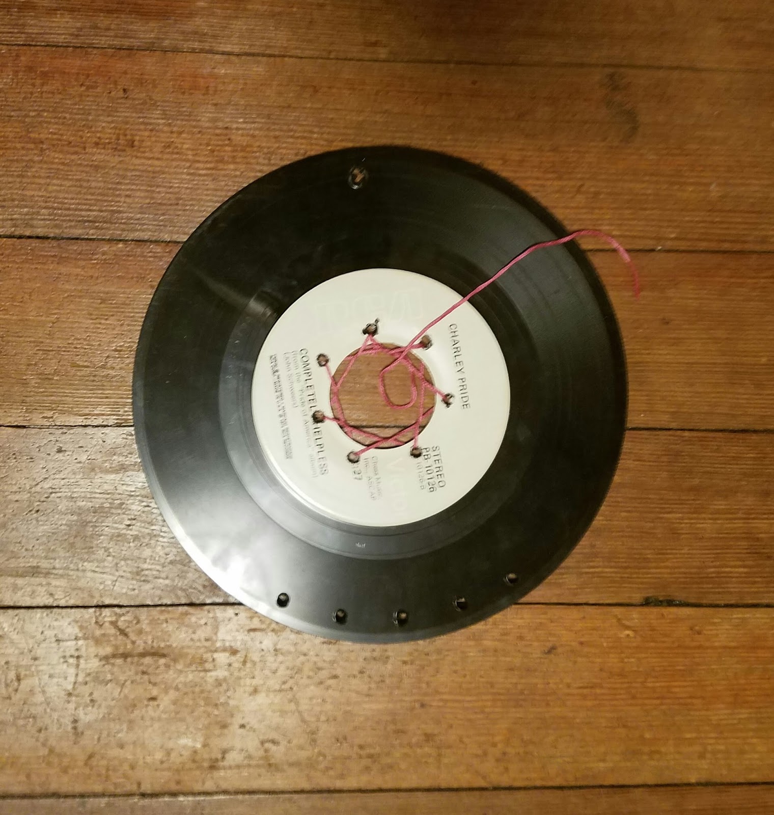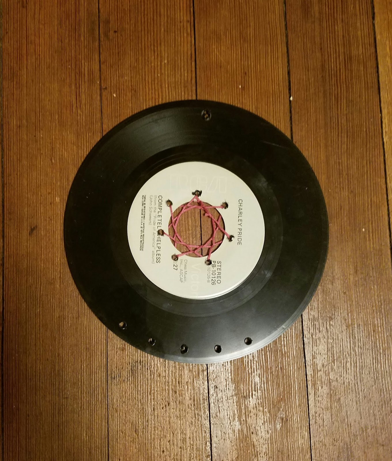 A few years ago my grandmother moved into a smaller house and was getting rid of some old 45 vinyls. I grabbed them knowing I would come up with some kind of art project for them.